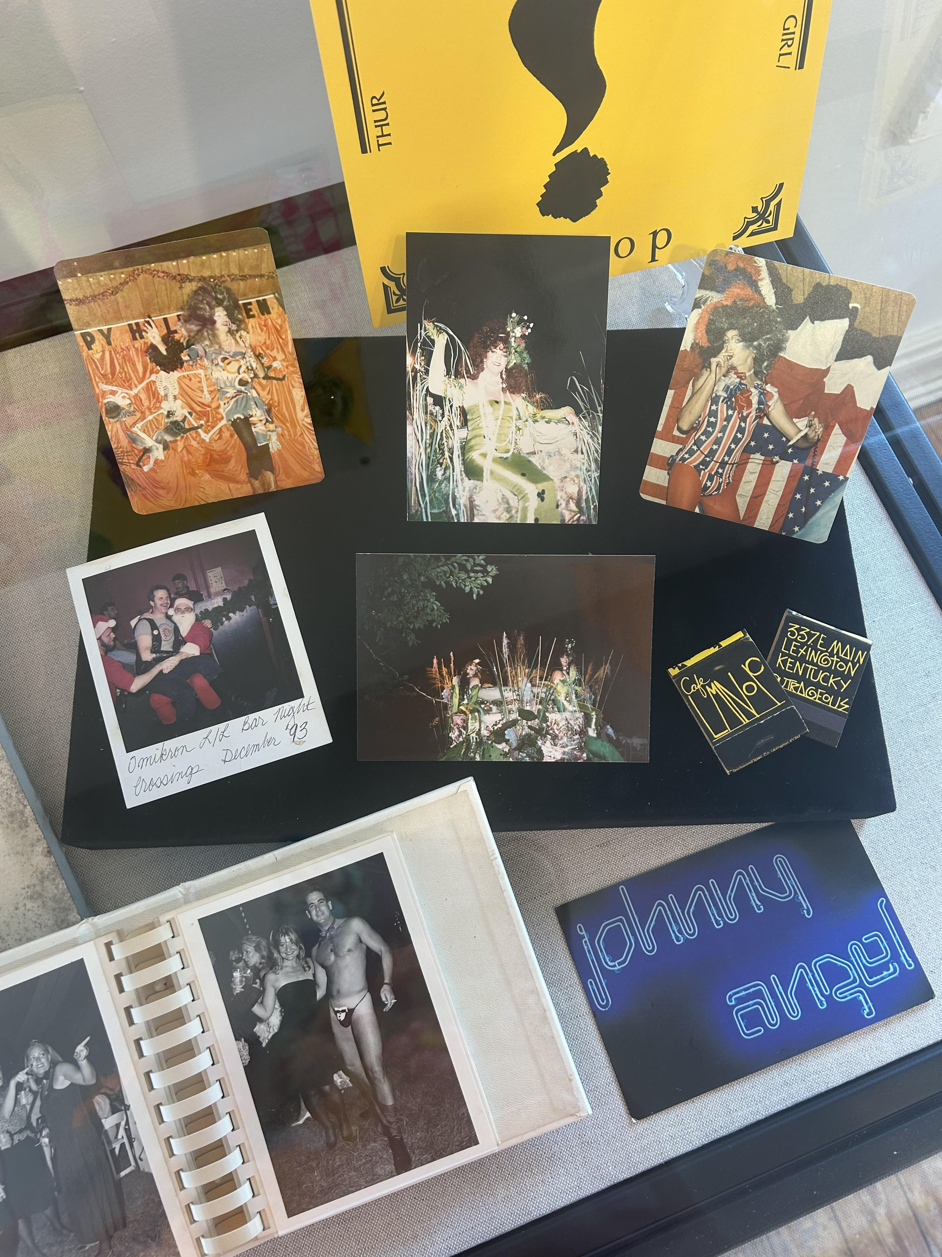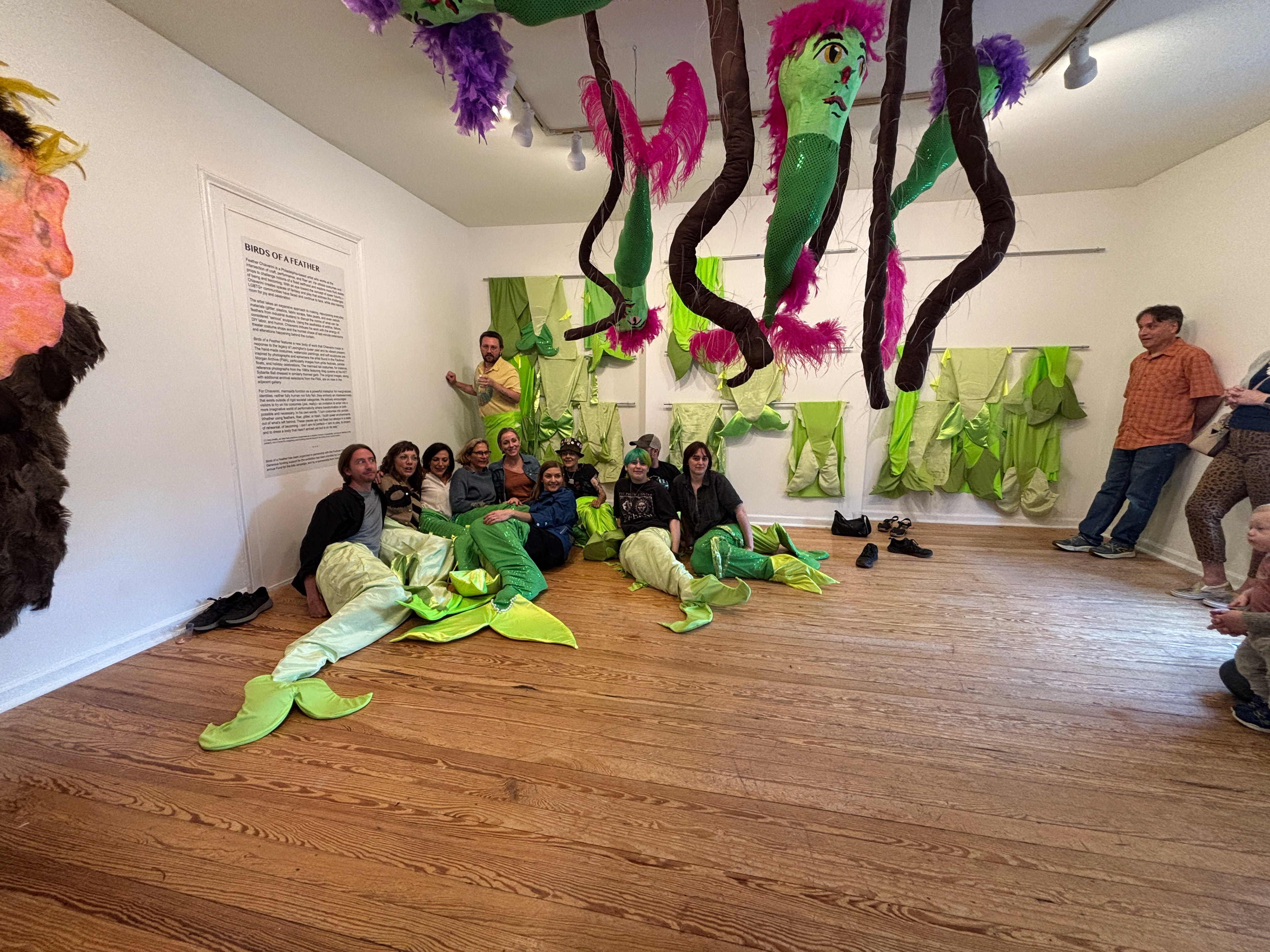 Birds of a Feather features a new body of work that Chiaverini made in response to the legacy of Lexington’s queer past and its vibrant present. The hand-made costumes, watercolor paintings, and soft sculptures are inspired by photographs and ephemera the artist found in the Faulkner Morgan Archive (FMA), particularly images from pride festivals, parade floats, and holiday celebrations. The mermaid tail costumes, for instance, reference photographs from the 1980s featuring drag queens at the KET Sybarite Ball dressed in similarly themed garb. The original images, along with other archival selections from the FMA, are on view in the adjacent gallery.
