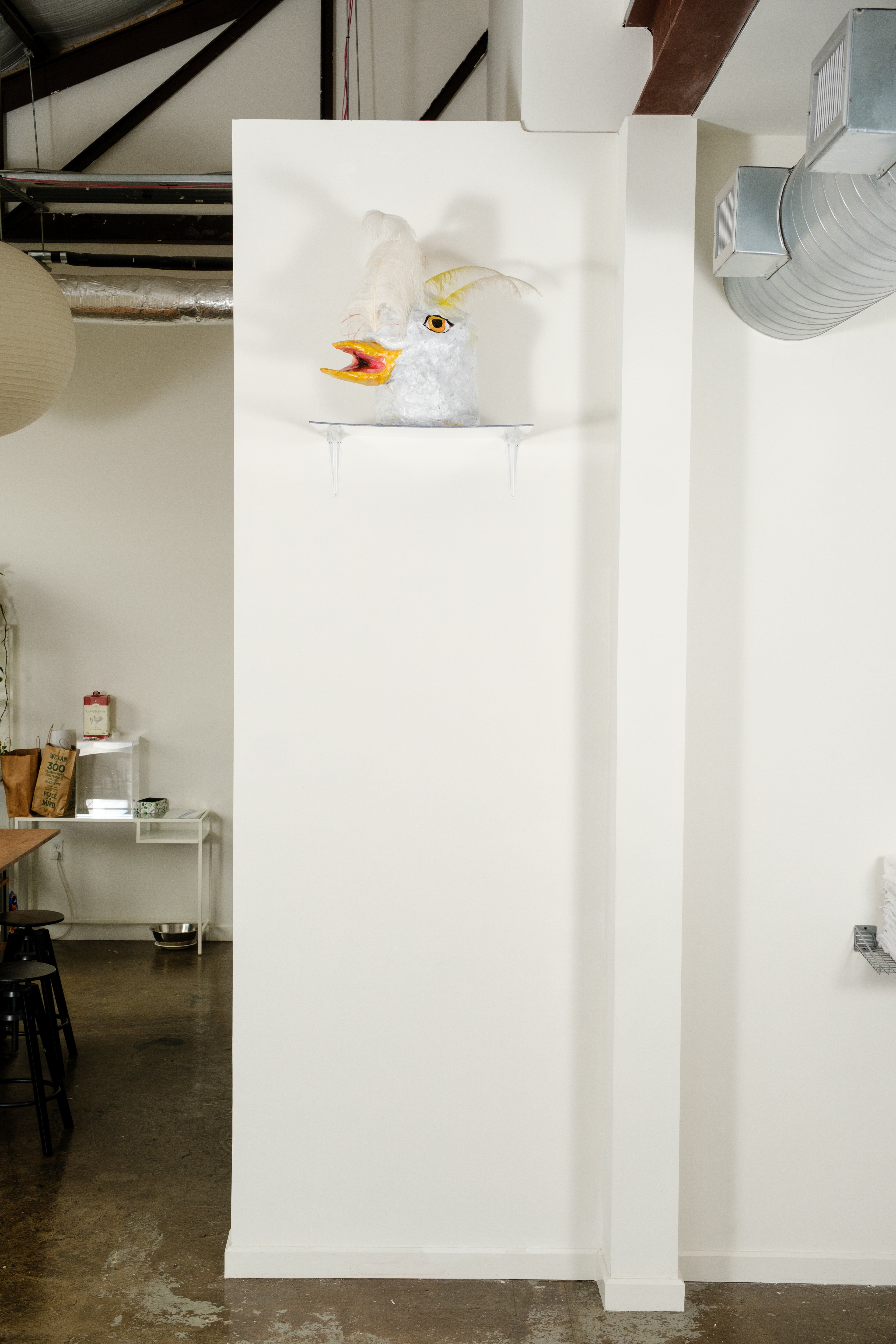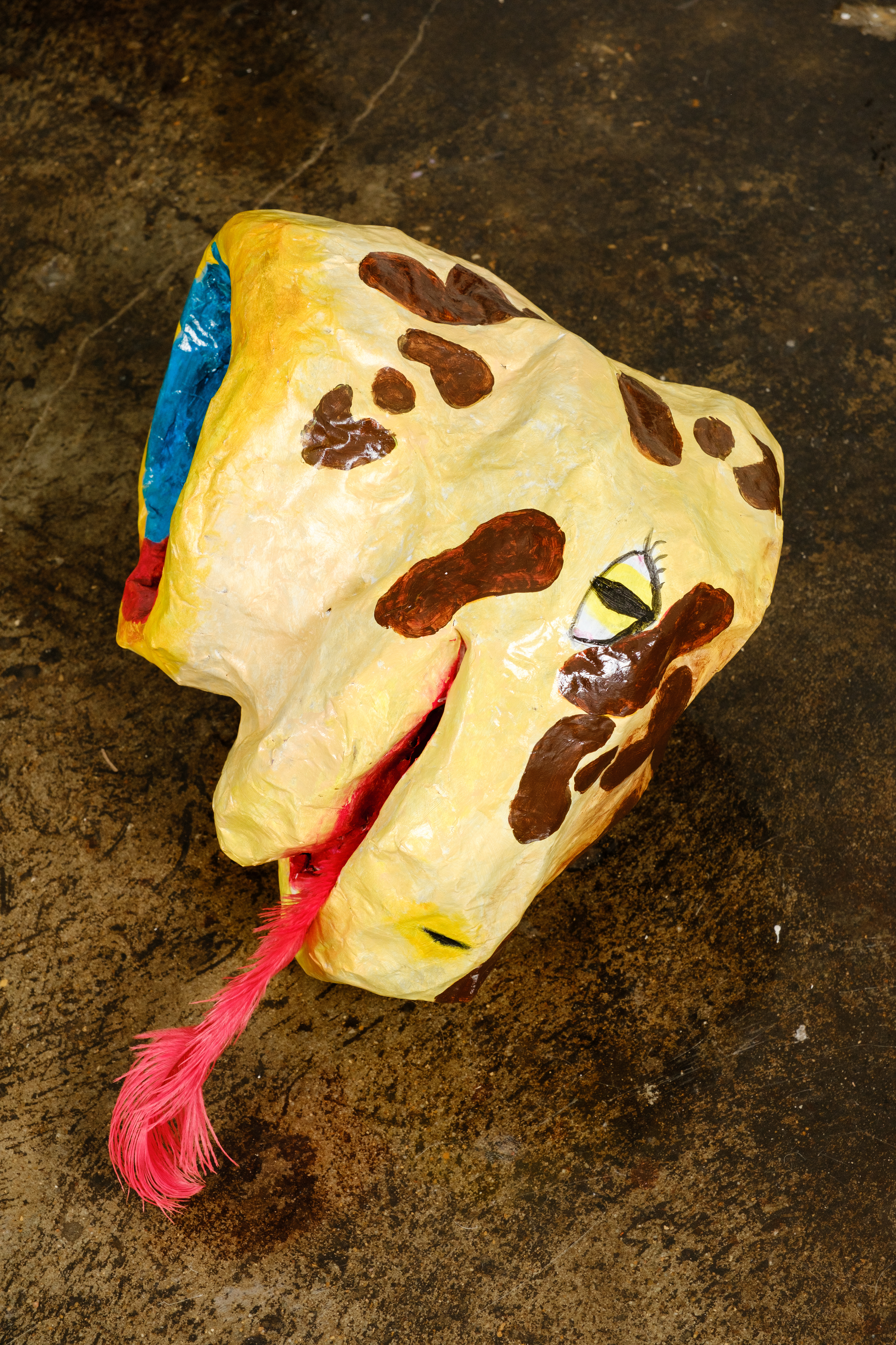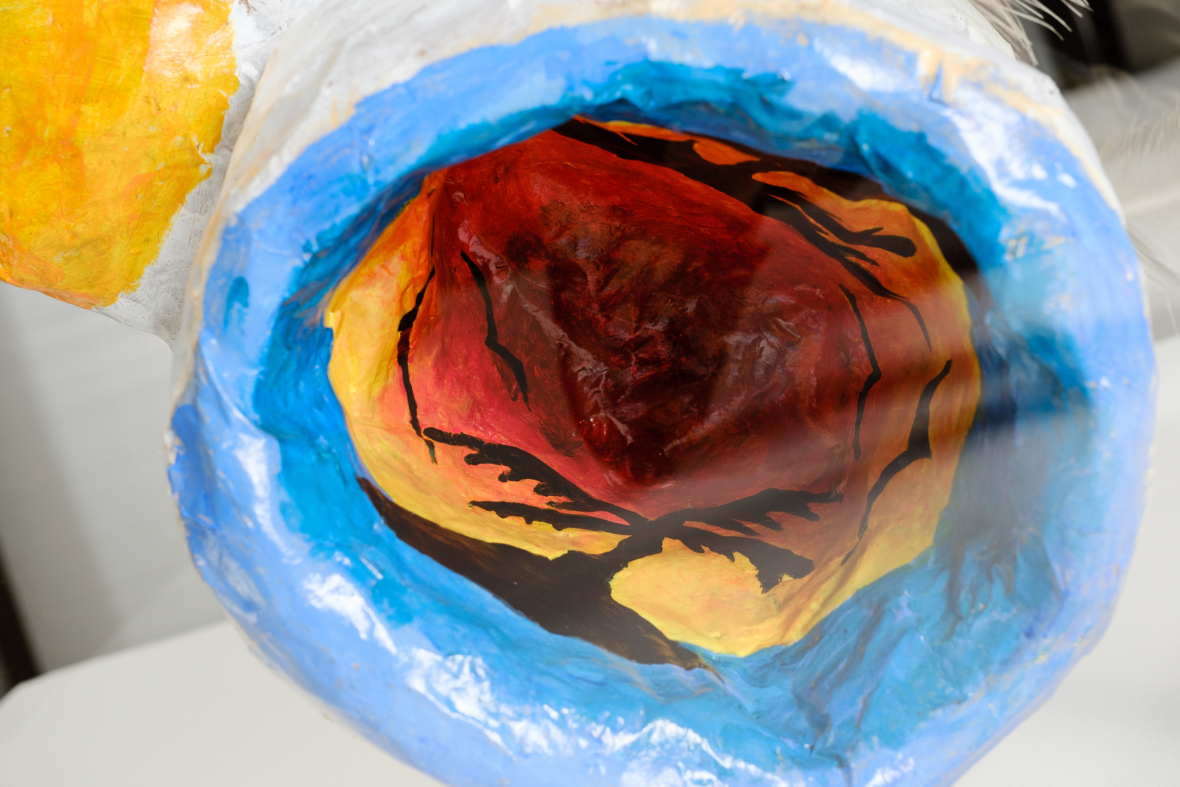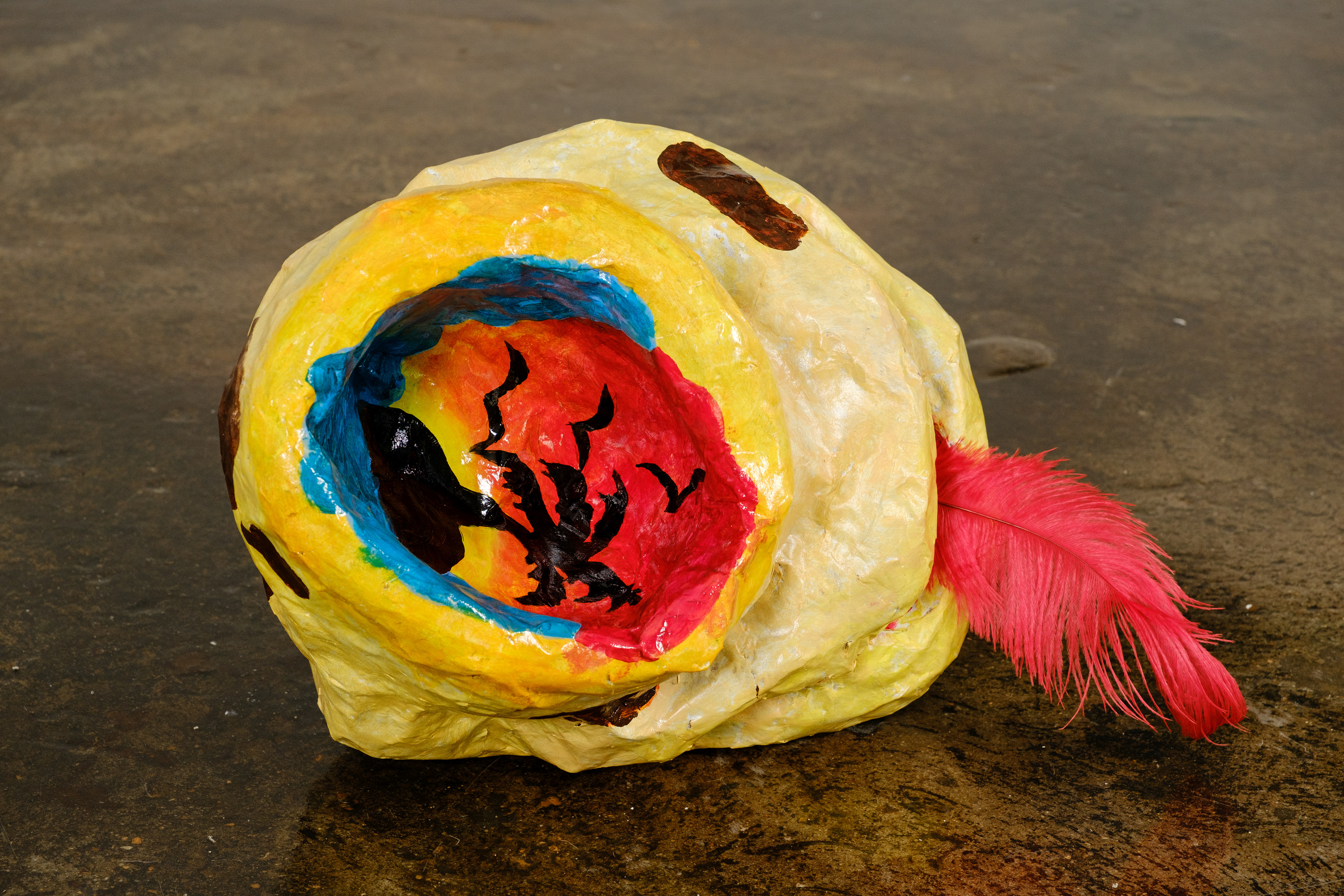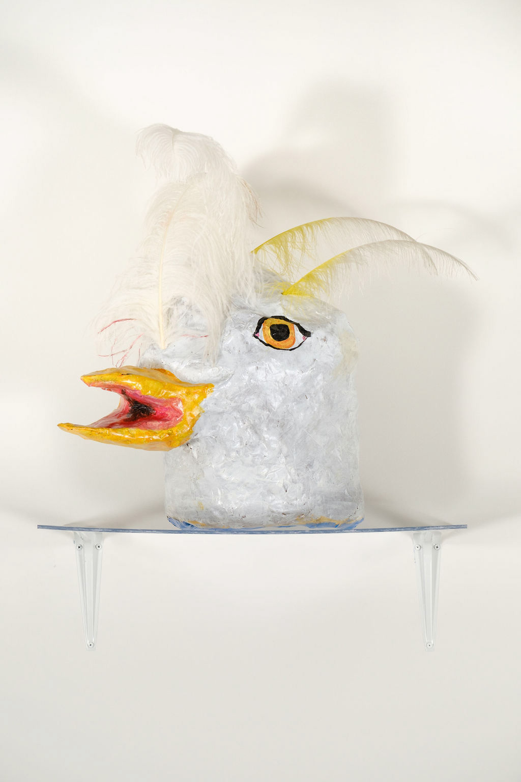 Paper mache, acrylic, ostrich feather
