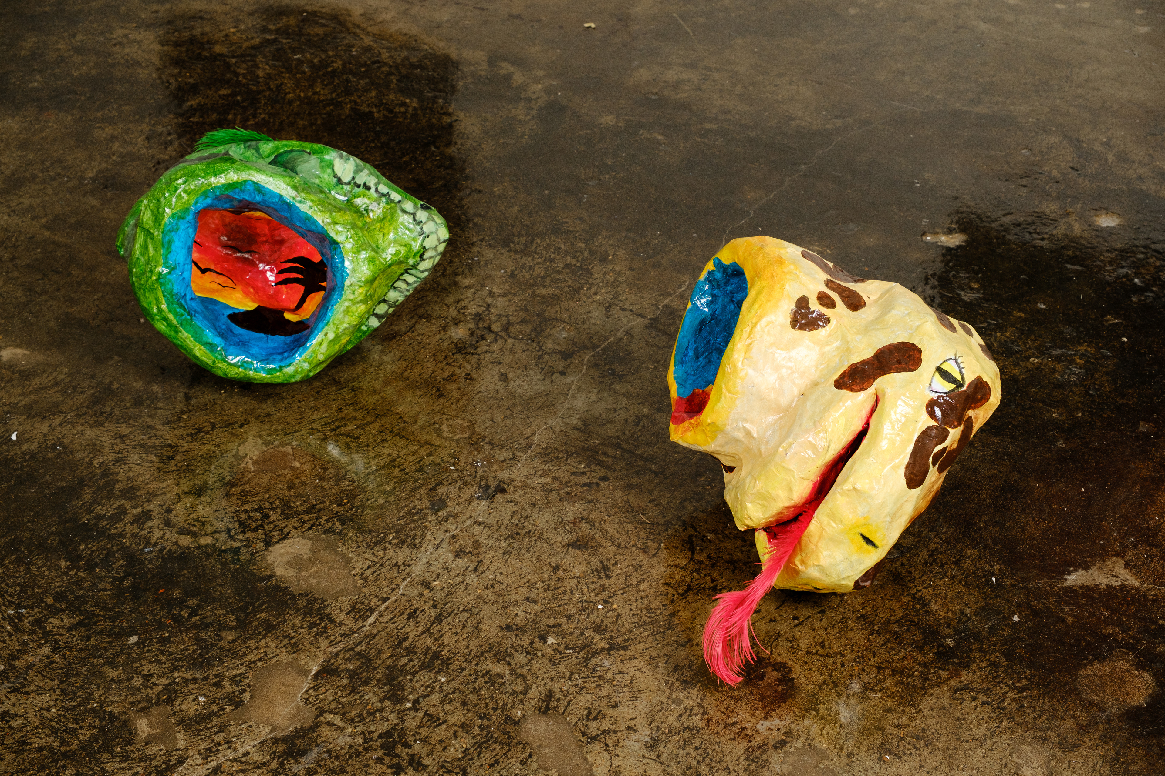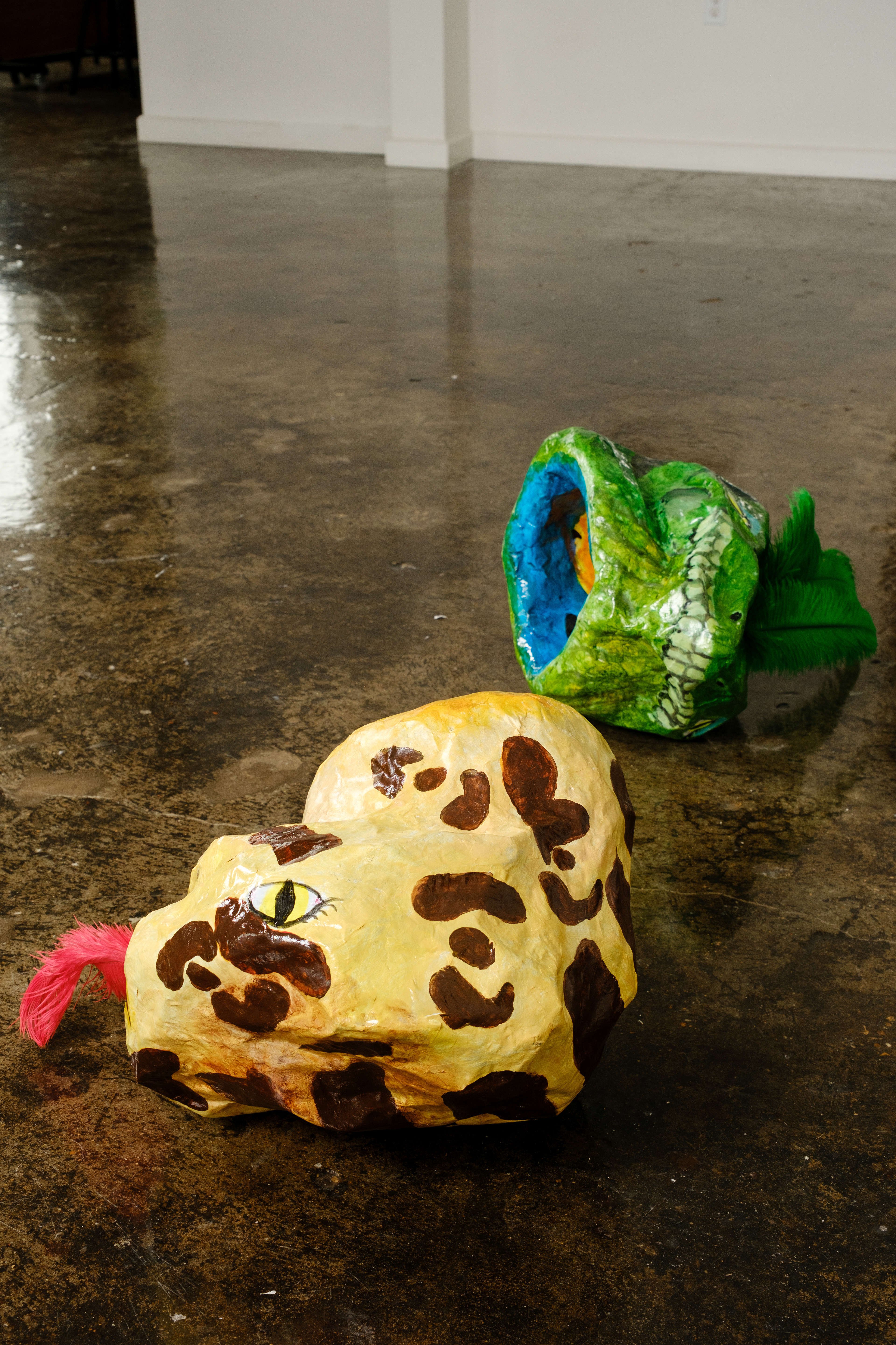 Paper mache, acrylic, ostrich feathers
